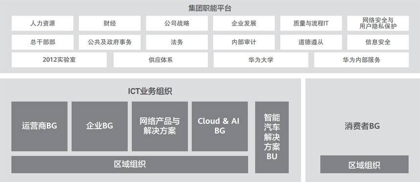 整體來看,除了職能部門,華為業(yè)務(wù)主要分為ICT業(yè)務(wù)和消費(fèi)者業(yè)務(wù),其中,ICT業(yè)務(wù)涵蓋了運(yùn)營商BG、企業(yè)BG和Cloud & AI BG,分別對應(yīng)運(yùn)營商客戶、政企客戶和云與計算產(chǎn)業(yè),這幾大業(yè)務(wù)也支撐起了華為的龐大營收。