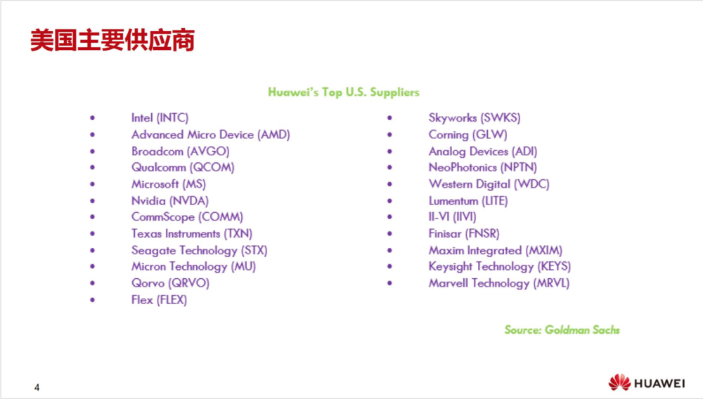 另外,華為官網(wǎng)還曾披露了美國的主要供應(yīng)鏈廠商。