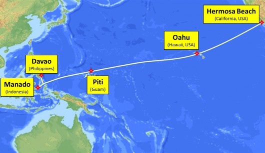 東南亞-美國(guó)SEA-US海底光纜系統(tǒng)是連接印尼萬(wàn)鴉老至美國(guó)洛杉磯的15000千米海底光纖電纜系統(tǒng),途徑菲律賓、夏威夷歐胡島和關(guān)島,設(shè)計(jì)容量達(dá)到20Tbps。
