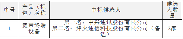 ICCSZ訊 今天上午,中國電信陽光采購網(wǎng)公布中國電信河南分公司2015年寬帶終端設備集中采購項目中標候選人,中興通訊與烽火通信兩家中標。具體信息如下: