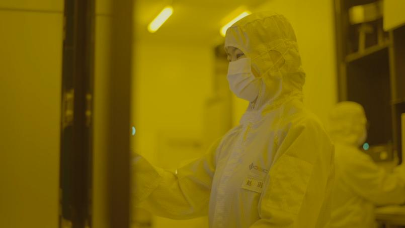光電子先導院8英寸硅光平臺黃光區(qū),技術人員正在操作光刻機