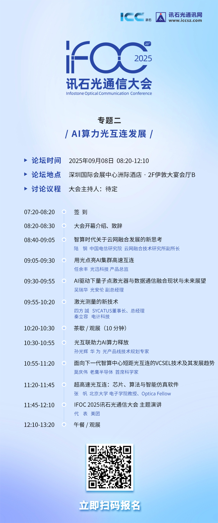 歡迎光通信與集成電路領(lǐng)域的專業(yè)人士報名參會,共同探討行業(yè)未來。請掃描下方二維碼完成報名。
