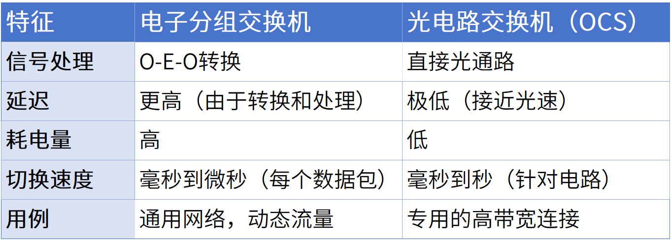 ? 光電路交換機(jī)(OCS)則如同自動(dòng)化鐵路調(diào)車場(chǎng)。當(dāng)列車(光信號(hào))抵達(dá)時(shí),系統(tǒng)僅需重新配置物理軌道,即可創(chuàng)建從起點(diǎn)到終點(diǎn)之間的直達(dá)且不間斷的傳輸路徑,無需開啟車廂或讀取內(nèi)容,數(shù)據(jù)便能沿著專用物理線路以光速傳輸。這種設(shè)計(jì)徹底消除了傳統(tǒng)光-電-光轉(zhuǎn)換過程中存在的延遲與能耗問題。