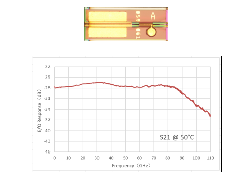InP-MZM/IQ-MZI芯片:高電光帶寬+優(yōu)驅(qū)動(dòng)特性,強(qiáng)化信號(hào)調(diào)制性能:采用MMI+ MZM光學(xué)波導(dǎo)及CL-TWE電極方案,結(jié)合光波導(dǎo)優(yōu)化制程工藝實(shí)現(xiàn)EO帶寬>67GHz,DCER>30dB,Vπ=2.1V 特性參數(shù)。降低驅(qū)動(dòng)電路能耗,適配低功耗通信設(shè)備需求,為AI數(shù)據(jù)中心、5G承載網(wǎng)等場(chǎng)景提供高效調(diào)制解決方案。