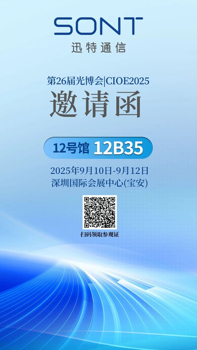 2025年9月10日至12日,迅特將在深圳舉行的中國國際光電博覽會(huì)上展示新品,誠摯邀請(qǐng)全球客商蒞臨#12B35展位,了解更多產(chǎn)品的信息。