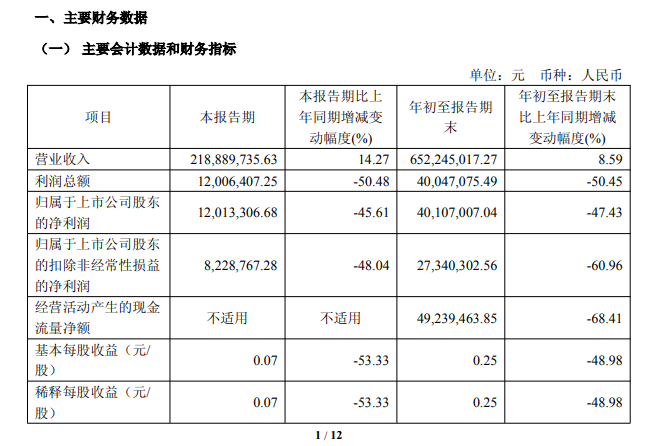 ICC訊 德科立公布2025年三季報(bào),2025年前三季度德科立營收為6.52億元,同比上升8.6%;歸母凈利潤為4011萬元,同比下降47.4%。其中第三季度,德科立營收為2.19億元,同比上升14.3%;歸母凈利潤為1201萬元,同比下降45.6%。