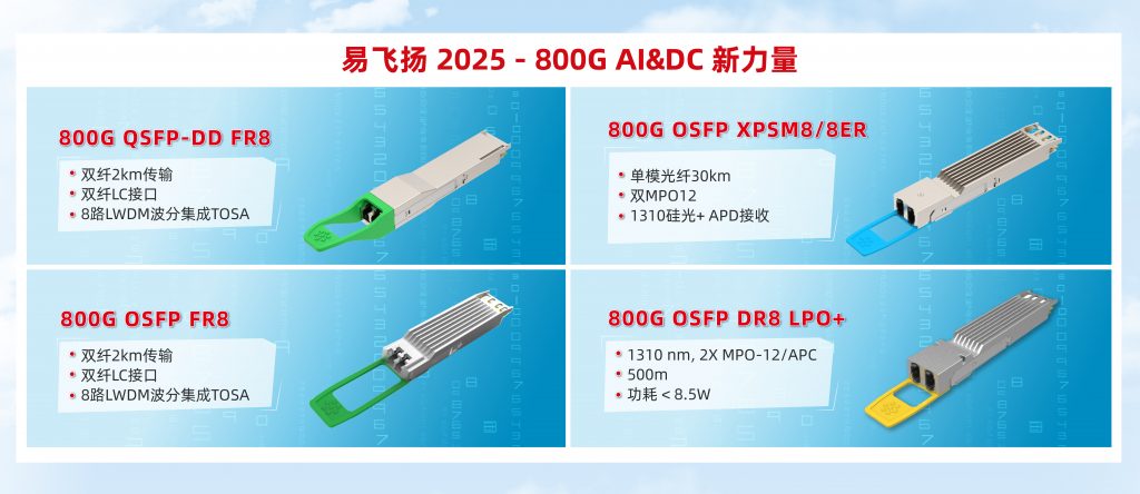 在主流800G DR8/2×FR4與VR8方案之外,易飛揚帶來三大“新勢力”,助力800G傳統(tǒng)數據中心向各種應用的邊界挺進!