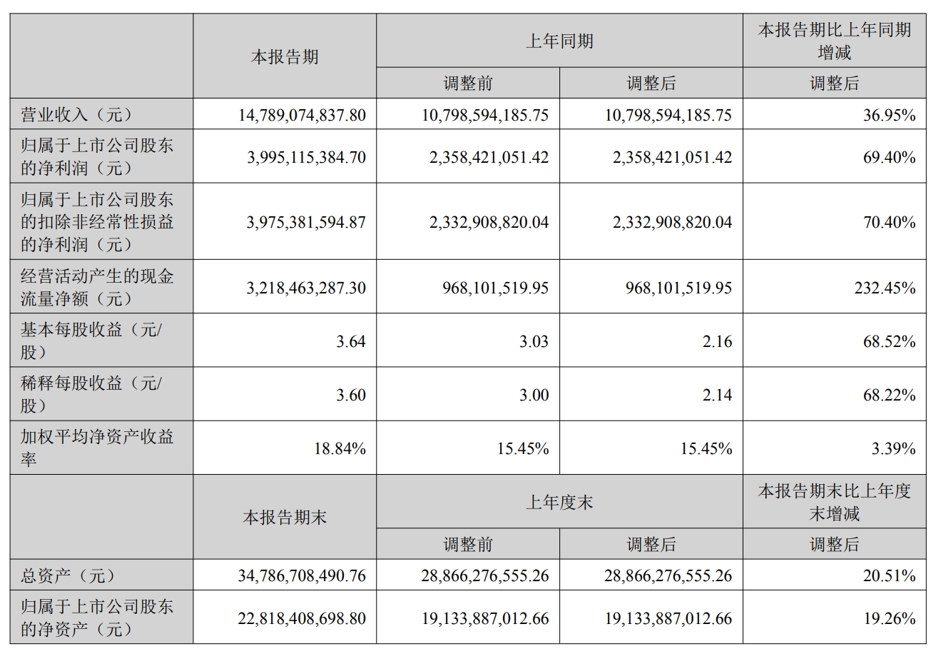 ICC訊 中際旭創(chuàng)股份有限公司(簡稱中際旭創(chuàng))發(fā)布2025年上半年業(yè)績公告,報告期內,公司實現營業(yè)收入147.89億元,同比增加36.95%;實現營業(yè)利潤48.77億元,同比增加78.77%;歸屬于上市公司股東的凈利潤39.95億元,同比增加69.40%。