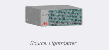 Lightmatter(https://lightmatter.co/)正在設(shè)計所謂“光子計算平臺”,包括通過光互連層互聯(lián)的光芯粒,以及可智能優(yōu)化光/電處理的軟件,目標(biāo)是以更低功耗和更高每機(jī)架性能構(gòu)建高帶寬機(jī)器學(xué)習(xí)AI系統(tǒng)。