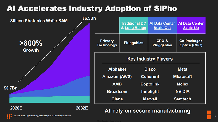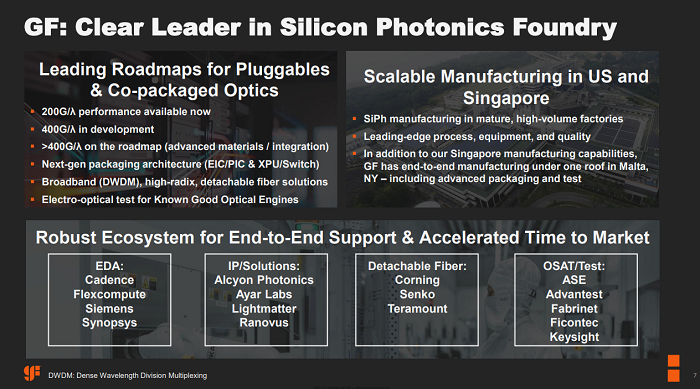 GF對AMF的收購整合了AMF的制造資產(chǎn)、廣泛的知識產(chǎn)權(quán)和專業(yè)技術(shù)人才,將顯著擴(kuò)展GF的硅光子技術(shù),使該公司成為按營收計算全球最大的純硅光子代工廠。借助AMF超過15年的制造經(jīng)驗,GF將利用其新加坡的200mm平臺滿足長距離光通信、計算、激光雷達(dá)和傳感領(lǐng)域的需求,并計劃隨著市場增長升級至300mm平臺,以確保為AI數(shù)據(jù)中心、通信及下一代應(yīng)用提供可靠的全球供應(yīng)。
