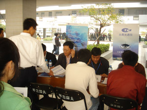 2007年12月15日,作為光電行業(yè)第一個(gè)面向大學(xué)院校的專業(yè)人才招聘展——中國光電校園招聘活動(dòng)(廣州站)今天在華南師范大學(xué)大學(xué)城校區(qū)舉行,來在華南師范大學(xué)、中山大學(xué)、華南理工大學(xué)、暨南大學(xué)、深圳大學(xué)等華南地區(qū)重點(diǎn)院校的上千名光電專業(yè)以及其他相關(guān)專業(yè)的畢業(yè)生參加了本次招聘會(huì)。在招聘企業(yè)方面由舉辦方OFweek光電新聞網(wǎng)帶隊(duì)的二十多家企業(yè)參加了本次招聘會(huì)。訊石公司組織會(huì)員公司騰天科技、威誼光通技術(shù)有限公司參加了本次招聘會(huì)。