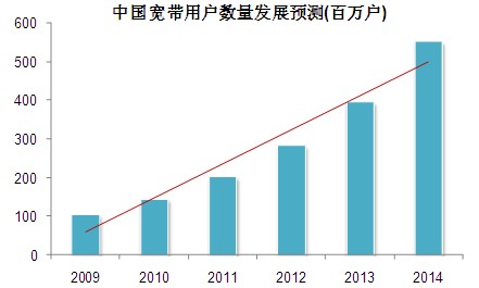 一位香港的分析師謝利•黃(Sherrie Huang)表示:“若中國寬帶市場2010年至2014年繼續(xù)保持25%的用戶增長率,寬帶業(yè)務將成為增長的重要的增長推動力,毫無疑問,越來越多的運營商將進入這個龐大且快速增長的市場,以求分一杯羹。”