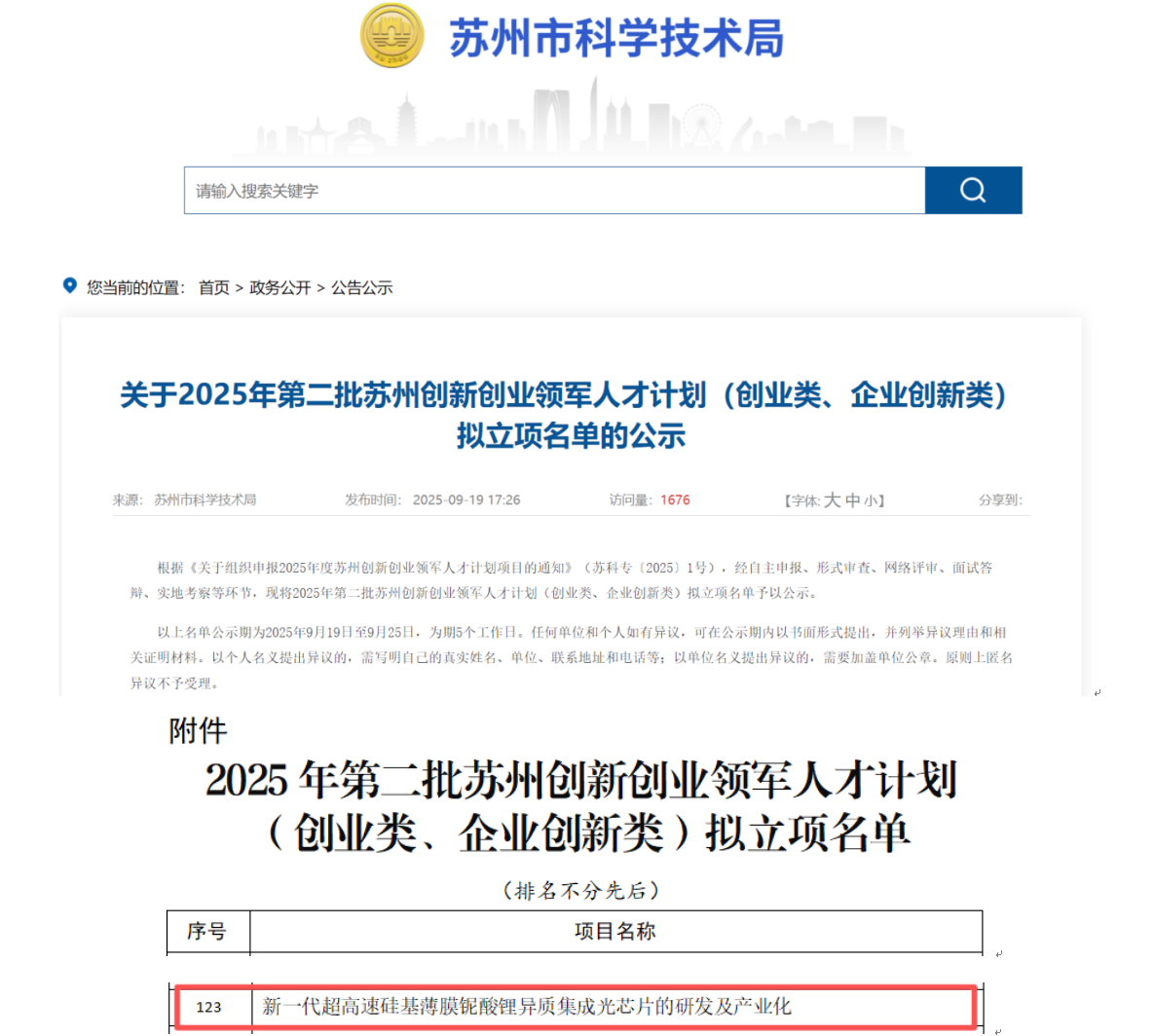 2025年9月19日,第二批蘇州創(chuàng)新創(chuàng)業(yè)領軍人才計劃擬立項公示,蘇州易纜微成功入選該計劃“企業(yè)創(chuàng)新類”項目,這也是公司第二次獲此榮譽。