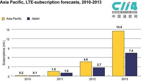 C114訊 北京時(shí)間10月21日下午消息(桑菊)電信研究機(jī)構(gòu)Informa在報(bào)告中指出,預(yù)計(jì)到2015年底整個(gè)亞太地區(qū)LTE用戶將會(huì)達(dá)到1440萬(wàn)。其中,日本將會(huì)占有半數(shù)以上的用戶份額。