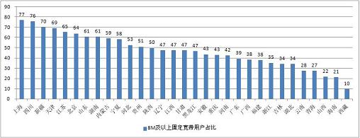 圖11 2015年4月全國(guó)各省8M以上固定寬帶用戶占比對(duì)比