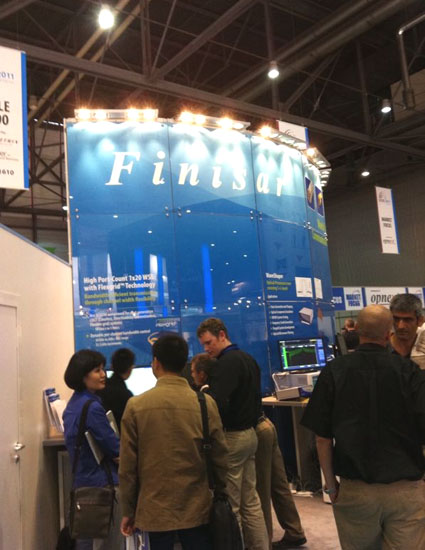 此外,F(xiàn)inisar還展示了10Gbps DWDM 80km SFP+模塊,也利用了EXFO的FTB-880多通道測試儀和FTB-1手持式模塊化測試平臺對該模塊進(jìn)行10.7Gbps 80km的現(xiàn)場傳輸測試。該模塊具有低功耗、小尺寸、內(nèi)部雙CDR/APD等諸多特點(diǎn),支持XFI接口應(yīng)用。