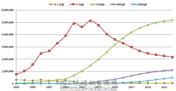 100GigE 與10GigE的發(fā)展趨勢(shì)相同