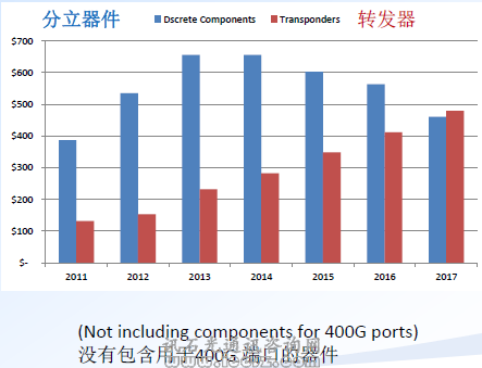 的每Gb/s的價(jià)格下降得要快。降低100G 器件的最佳方法是:增加交易量!