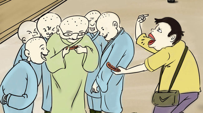 他告訴和尚,梳子是善男信女的必備之物,經常被女香客帶是在身上,如果大師能為梳子開光,成為她們的護身符,既能積善行善、又能保佑平安,很多香客 還能為 自己的親朋好友請上一把,保佑平安,弘揚佛法,揚我寺院之名,豈不是天大善事?大師豈有不做之理?阿彌陀夫,善哉!善哉!大師雙手合十,施主有這番美意, 老衲豈能不從?