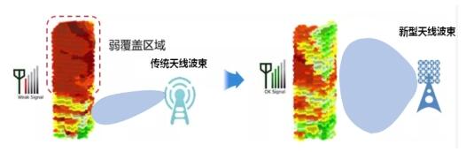 傳統(tǒng)天線為定向覆蓋的寬波束,在垂直方向上很難隨著用戶的位置進(jìn)行動態(tài)調(diào)整。在滿足中、高層樓宇5G覆蓋的同時很難兼顧低層樓宇信號覆蓋。成都聯(lián)通攜手華為在金融城區(qū)域開展覆蓋提升專項工作,充分利用5G Massive MIMO靈活的波束技術(shù)優(yōu)勢,可更精準(zhǔn)地匹配差異化的覆蓋需求,增強(qiáng)中高層樓宇信號強(qiáng)度的同時兼顧低樓層信號覆蓋,支撐5G業(yè)務(wù)快速發(fā)展。