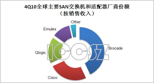 * 2010年第四季度,全球SAN交換機(jī)和適配器市場規(guī)模環(huán)比增長10%至7.49億美元;
