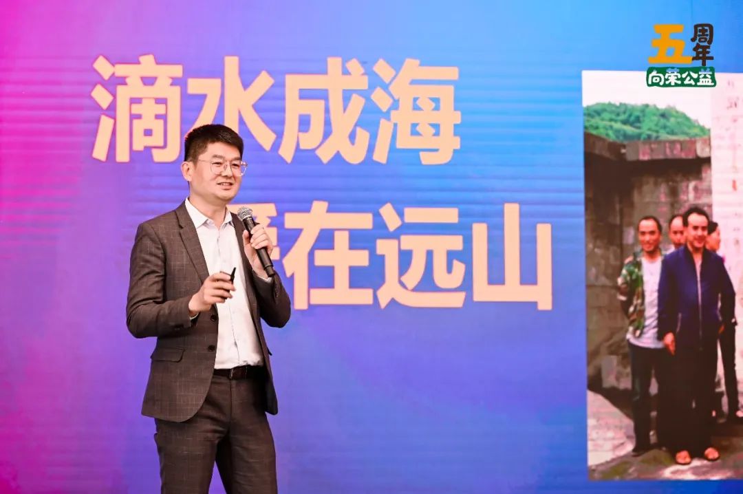 秘書長丁廣泉先生以“滴水成海,愛在遠(yuǎn)山”主題進(jìn)行分享,帶我們共同回顧了向榮的源起、傳承和五年成果。