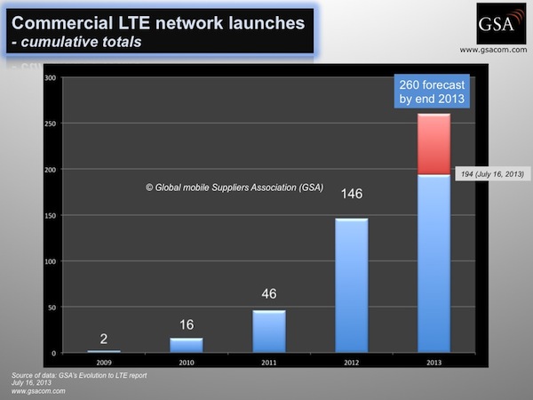 【訊石光通訊咨詢網(wǎng)】2013年7月17日,最新的GSA(全球移動(dòng)供應(yīng)商協(xié)會(huì))LTE報(bào)告指出,有194家運(yùn)營(yíng)商在全球75個(gè)國(guó)家或地區(qū)已正式推出商用LTE服務(wù)。