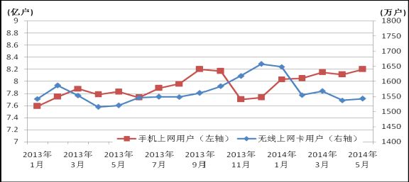 圖4. 2013-2014年各月手機(jī)上網(wǎng)和無(wú)線上網(wǎng)卡用戶比較