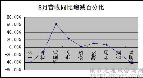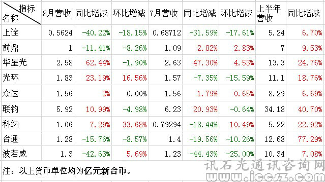 臺(tái)灣光通信商8月營(yíng)收同比增減情況