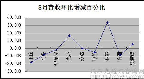 臺(tái)灣光通信商8月營(yíng)收環(huán)比增減情況