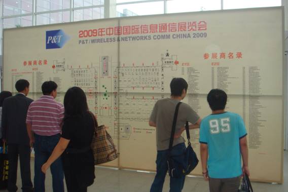 國(guó)際展覽中心位于順義的別墅區(qū),規(guī)模宏大,遠(yuǎn)超靜安莊的老國(guó)展,遠(yuǎn)遠(yuǎn)望去,氣勢(shì)宏偉。入口在E1廳門口,從停車場(chǎng)走到入口就需要大概10分鐘的路程。進(jìn)入展廳,高高的天花板上就懸掛了很多廠商的巨幅廣告,如大唐電信,ZTE,愛(ài)立信等,顯示出廠商雄厚的實(shí)力。