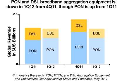 由于Verizon的FiOS和AT&T的U-Verse推出放緩,加之季節(jié)性疲軟,北美PON,DSL,FTTH設(shè)備市場(chǎng)一季度下降21%。