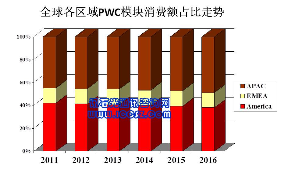 據(jù)ElectroniCast報告顯示,隨著市場對PWC模塊需求量的強勢上升,全球PWC模塊消費額(Consumption Value)將持續(xù)增長,部分增長將被平均價格下滑抵消。