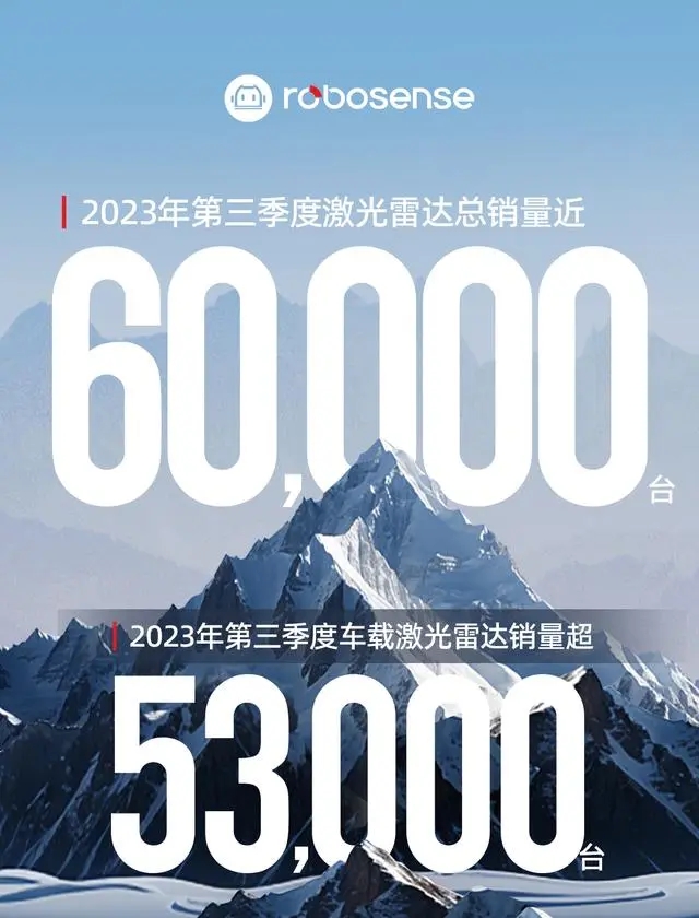 ICC訊 11月20日,RoboSense速騰聚創(chuàng)宣布2023年第三季度激光雷達總銷量近60,000臺,其中車載激光雷達總銷量超53,000臺,均超過2023年前六個月的激光雷達銷量總和。