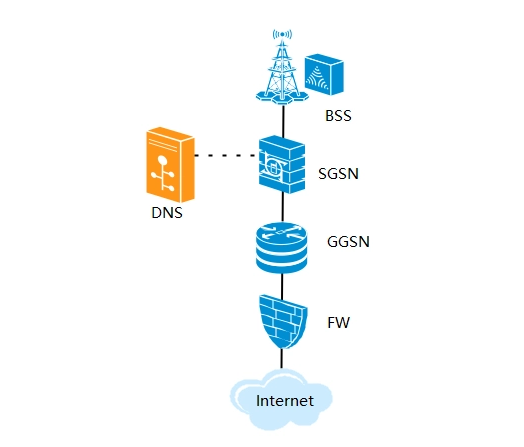 而且根服務(wù)器只是提供域名解析服務(wù)的,是互聯(lián)網(wǎng)中的一環(huán),不是影片中設(shè)定的代表整個互聯(lián)網(wǎng),DNS 在 GPRS 網(wǎng)絡(luò)中的位置如下圖所示。