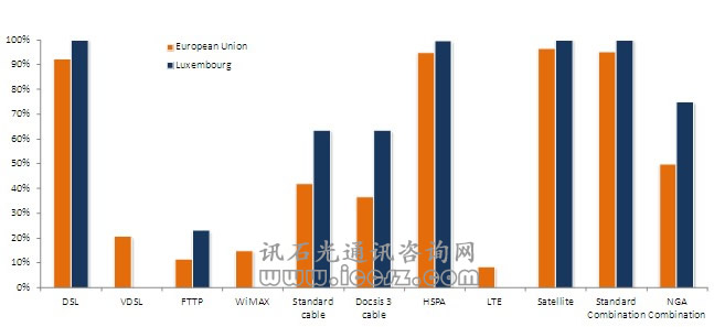調(diào)研結(jié)果也顯示,競(jìng)爭(zhēng)技術(shù)正在瓜分著超高速寬帶市場(chǎng)。在立陶宛,F(xiàn)TTP是最重要的超高速寬帶接入技術(shù),覆蓋達(dá)到59%。這與歐洲整體12%的FTTP平均覆蓋水平的情形不同。立陶宛的Docsis 3(在cable TV網(wǎng)絡(luò)上提供超高速寬帶服務(wù)的標(biāo)準(zhǔn))也領(lǐng)先歐洲平均水平,立陶宛的覆蓋達(dá)到42%,而歐洲平均覆蓋是37%。在VDSL(在電話網(wǎng)絡(luò)上提供超高速寬帶服務(wù))方面,立陶宛沒有使用這一接入,而歐洲的平均水平是21%。