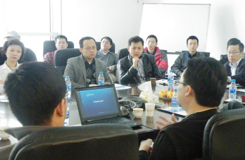 之后,TEEC一行在公司會(huì)議室聽取了旭創(chuàng)科技創(chuàng)立兩年多來(lái)的發(fā)展現(xiàn)狀及未來(lái)規(guī)劃。旭創(chuàng)管理團(tuán)隊(duì)和大家一起就商業(yè)模式、融資、國(guó)內(nèi)上市等問(wèn)題進(jìn)行了充分交流。大家集思廣益,分享各自的經(jīng)驗(yàn)、意見及看法。這正是TEEC最希望在企業(yè)互訪活動(dòng)中看到的熱情洋溢的互助場(chǎng)面。之后意猶未盡,大家還在午餐中繼續(xù)討論。