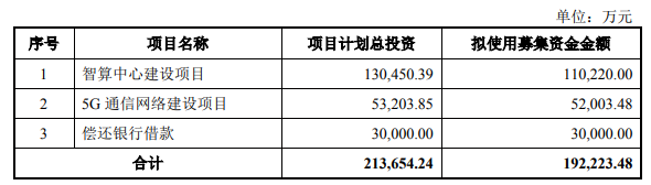 據(jù)募集說明書,中貝通信擬定增募資不超過19.22億元。募集資金凈額將投資于以下項目:其中智算中心建設(shè)項目擬使用11.02億元,5G通信網(wǎng)絡(luò)建設(shè)項目擬使用募集資金5.20億元,償還銀行借款擬使用募集資金3億元。
