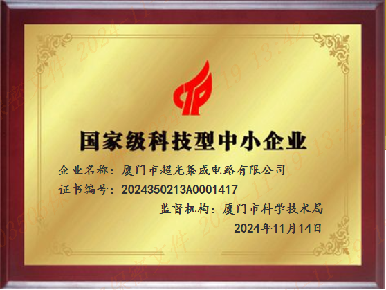 近期,廈門市科學(xué)技術(shù)局公布了廈門市2024年第五批入庫科技型中小企業(yè)名單,廈門市超光集成電路有限公司(簡稱:廈門超光)憑借過去三年在創(chuàng)新能力與科技成果轉(zhuǎn)化方面的杰出表現(xiàn),榮獲”國家級科技型中小企業(yè)”認(rèn)證。這一殊榮標(biāo)志著廈門超光在科技領(lǐng)域的創(chuàng)新能力和發(fā)展?jié)摿Φ玫搅藝覚?quán)威部門的高度認(rèn)可。