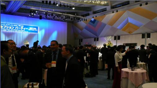 VIP接待酒會(huì)安排在開(kāi)展第一天的中午,這也是VIP享受的重要服務(wù)之一。在展會(huì)方精心地安排下,酒會(huì)有條不紊地進(jìn)行。酒會(huì)一開(kāi)始由FOE展會(huì)組織方負(fù)責(zé)人發(fā)言表達(dá)了感謝之意,之后參加基調(diào)演講的國(guó)際知名廠商的講師代表紛紛上臺(tái)亮相,其中又選擇了日本本地NTT代表發(fā)言。整場(chǎng)酒會(huì)歡快、熱烈,大家在酒會(huì)中盡情交流,訊石隨行團(tuán)員也認(rèn)識(shí)了不少客戶其中有NEC合作處高級(jí)副總裁Arutaki先生、Pyxisway公司總裁Kobayashi先生以及臺(tái)灣傳承光電魏總和吳總、Opnext等相關(guān)人員。