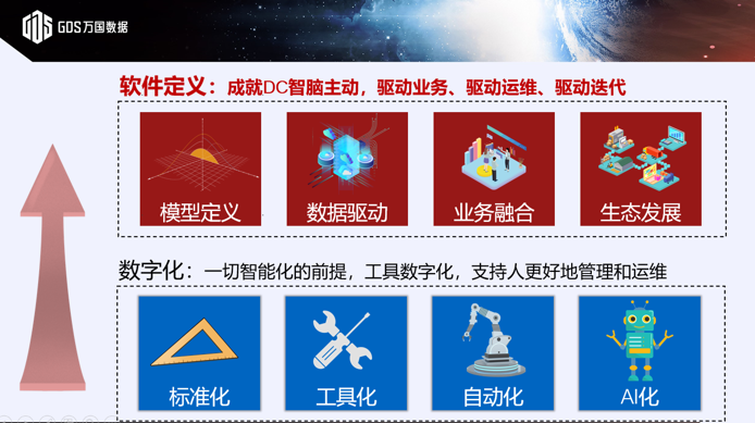 對此,萬國數(shù)據(jù)謝云昭在發(fā)言中表示:“在數(shù)據(jù)中心行業(yè),數(shù)字化已成為實現(xiàn)智能化的前提,體系的引入需要數(shù)字化工具支撐,才能形成標準化的流程平臺,并能夠向上承載,向下打穿,最終落到最后一公里發(fā)揮價值。萬國數(shù)據(jù)提出的‘軟件定義數(shù)據(jù)中心’理念,一方面是建立在數(shù)字化基礎(chǔ)之上,更重要的則是基于我們近20年來在行業(yè)內(nèi)的持續(xù)深耕,以及在數(shù)據(jù)中心數(shù)量及規(guī)模、覆蓋全國范圍的專業(yè)運營服務(wù)經(jīng)驗、客戶類型及數(shù)量等方面所建立的絕對領(lǐng)先優(yōu)勢和諸多實踐?!?