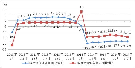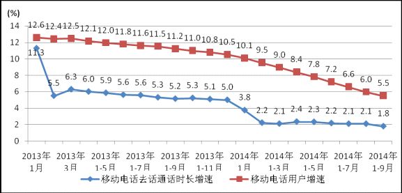圖1.2014年1-9月電信業(yè)務(wù)總量和電信業(yè)務(wù)收入發(fā)展情況