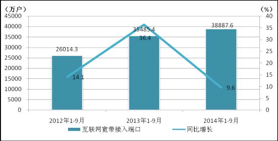 圖10 2012-2014年1-9月互聯(lián)網(wǎng)寬帶接入端口發(fā)展情況
