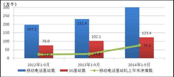 圖11 2012-2014年1-9月移動電話基站數(shù)發(fā)展情況