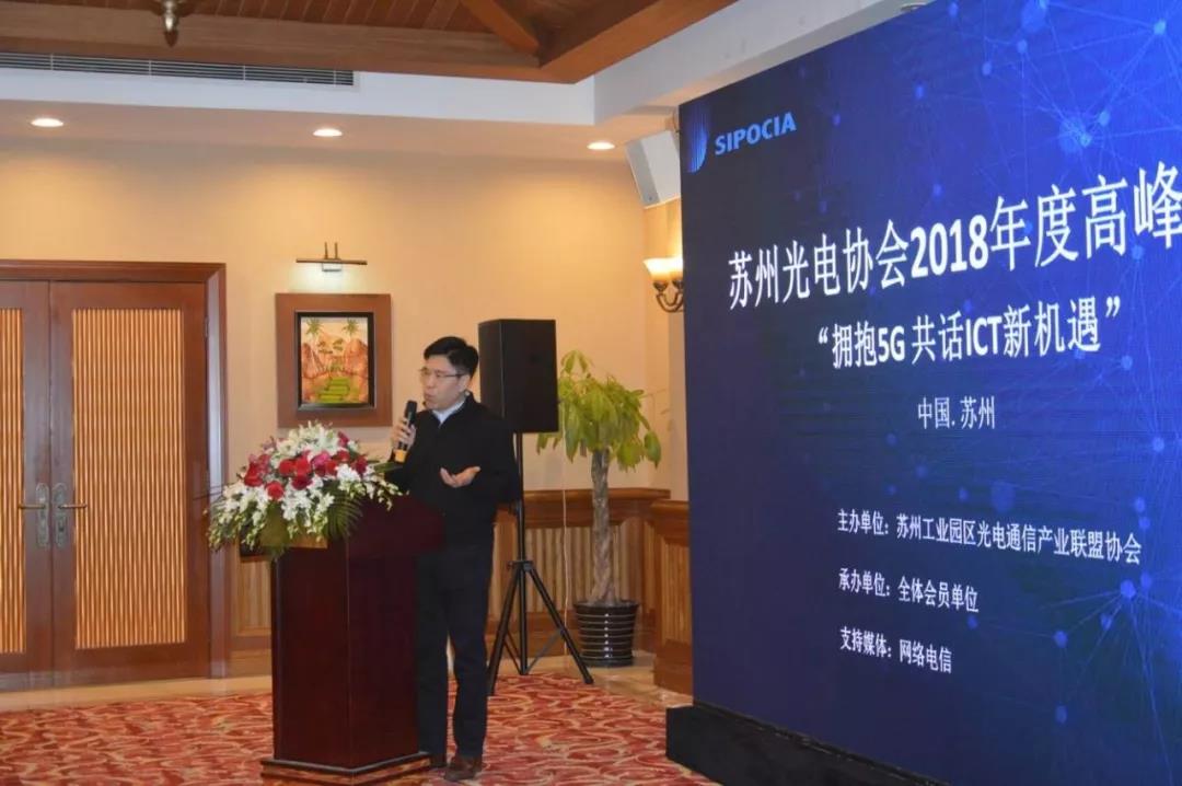2018年12月14日下午,蘇州光電通信產(chǎn)業(yè)聯(lián)盟協(xié)會(huì)2018年下半年度會(huì)員交流會(huì)暨年度高峰論壇在蘇州陽澄湖瀾庭度假酒店盛大舉行。本次論壇以"走進(jìn)5G 共話ICT新機(jī)遇"為主題,由蘇州工業(yè)園區(qū)光電通信產(chǎn)業(yè)聯(lián)盟協(xié)會(huì)主辦,全體會(huì)員單位共同承辦,網(wǎng)絡(luò)電信全媒體為論壇支持媒體。