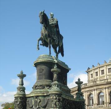 |     在茨溫格宮,隨處可見的還有形態(tài)各異的雕塑和雕像。穿過名畫陳列館中間的通路則進(jìn)入了更廣闊的劇院廣場(chǎng)(Theaterplatz),廣場(chǎng)中央矗立著英武的薩克森國王約翰騎士塑像。雕像作于1889年,刻畫的薩克森國王約翰(Johann)因翻譯但丁的《神曲》而聞名。 雕像左側(cè)即是著名的森伯歌劇院(Semperoper)。德累斯頓的戲院和歌劇院為這個(gè)城市帶來了音樂之城的美譽(yù),而森伯歌劇院則是其中最漂亮、最完美的一座。1678年,差不多就在如今的劇院廣場(chǎng)上,誕生了阿爾卑斯山以北第一家固定的劇院;1841年,嶄新的王家宮廷劇院在這里落成,隨后卻毀于1869年的大火中。后來,人們找到修建它的建筑大師戈特弗里德森伯(Gottfried Semper)重新設(shè)計(jì)并修建劇院,然而1945年二月的空襲使得這座世界聞名的歌劇院也無法幸免于難。如今,人們花去了40年的時(shí)間將劇院的外觀盡可能按原樣進(jìn)行了修復(fù),同時(shí),內(nèi)部的修繕也獲得了相當(dāng)大的成功。  |
