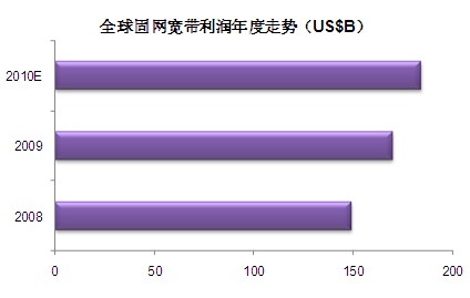 據(jù)ABI咨詢的報(bào)告,全球固網(wǎng)寬帶服務(wù)利潤09年已達(dá)1700億美元,年增長率為14%。
