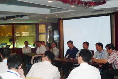 首先登場的是飛陽科技總裁李朝陽先生,他以《PLC芯片產(chǎn)業(yè)(中國)概述》為題,從PLC技術(shù)的概念、PLC產(chǎn)品、PLC市場前景到FAB在國內(nèi)生存、發(fā)展的必要條件,一一地為大家娓娓道來。在提到PLC市場前景的時候,李總也面帶笑容地恭喜大家:在年底后全世界的經(jīng)濟(jì)得以恢復(fù),PLC市場也會呈現(xiàn)一片大好的場面。接下來,是博創(chuàng)的朱偉博士為大家?guī)怼短剿鱌LC集成器件的發(fā)展道路》。朱博士以Bell Labs為引子,談到PLC的現(xiàn)狀與未來,講話中途,不時有各位公司老總提出問題,并對博創(chuàng)發(fā)展的如此之快表示極大的贊賞。