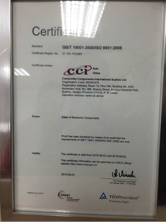 CCI目前分布于:德國(guó),美國(guó),香港,蘇州,成都。CCI 總公司成立于1990年,總部位于美國(guó)波士頓,現(xiàn)在,美國(guó)--總部,南美的墨西哥,亞洲的臺(tái)灣和中國(guó),歐洲的德國(guó)和法國(guó)分別都有分支機(jī)構(gòu)。 CCI作為一家的混合分銷商,通過(guò)與OEM廠家和代理商的廣泛合作為客戶提供專有的供應(yīng)渠道。CCI 致力于為客戶解決緊缺元器件的緊急需求,同時(shí)為客戶做部分物料的成本降低,和消化呆滯物料庫(kù)存。