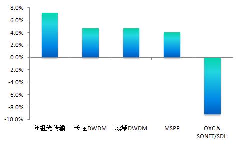 圖:光網(wǎng)絡(luò)設(shè)備細(xì)分市場(chǎng)CAGR(2013-2018)